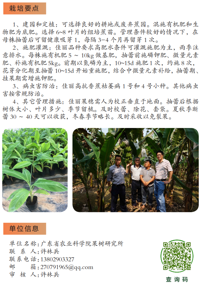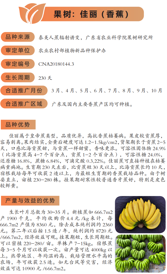 2022年农业主推技术:佳丽( 香蕉 )