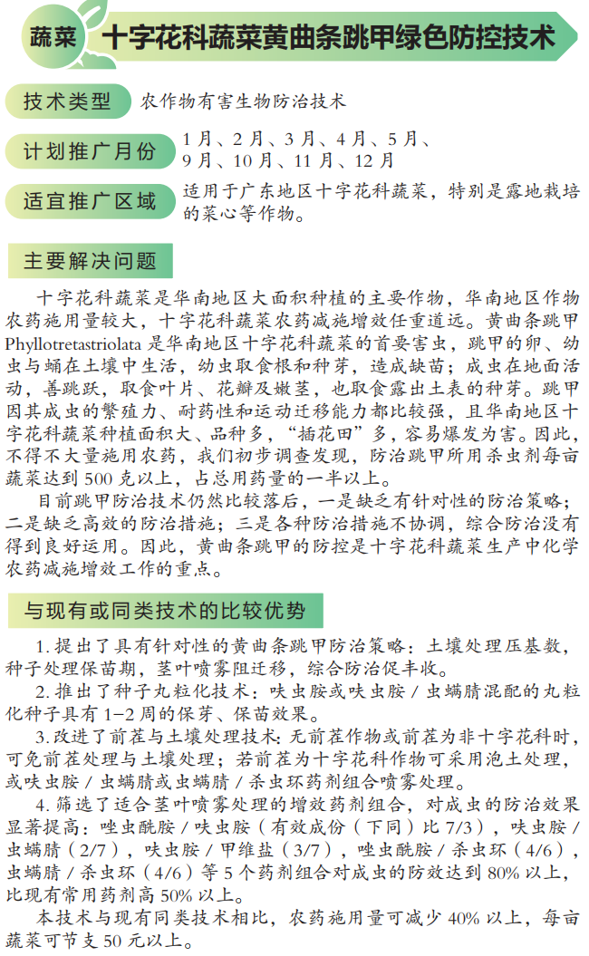 2022年农业主推技术:十字花科蔬菜黄曲条跳甲绿色防控技术