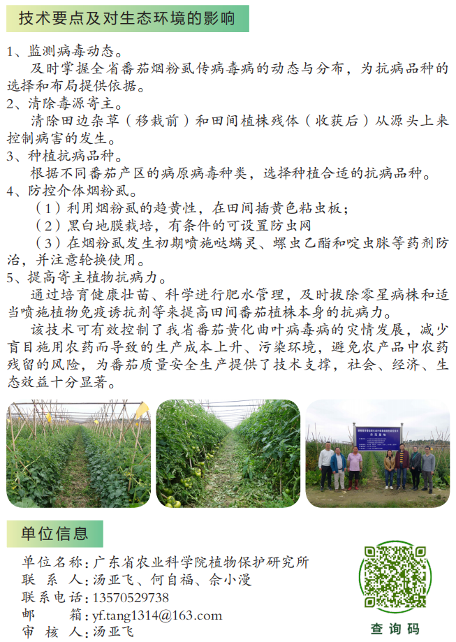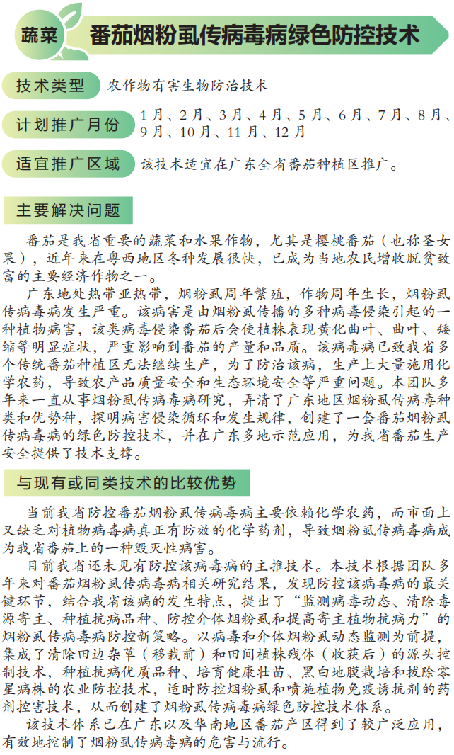 2022年农业主推技术:番茄烟粉虱传病毒病绿色防控技术