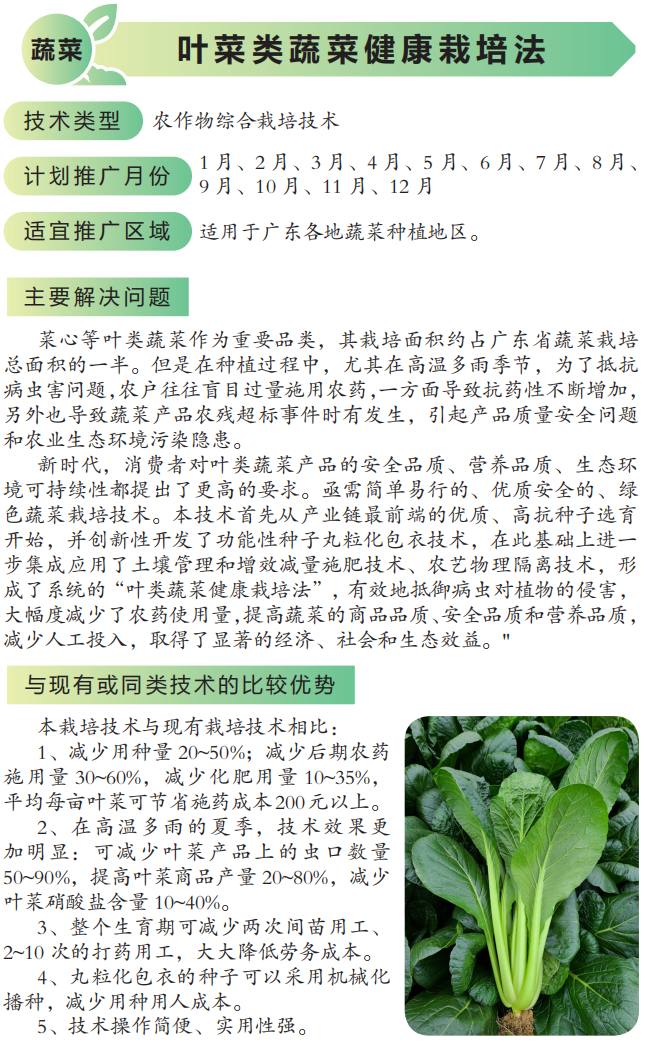 2022年农业主推技术:叶菜类蔬菜健康栽培法