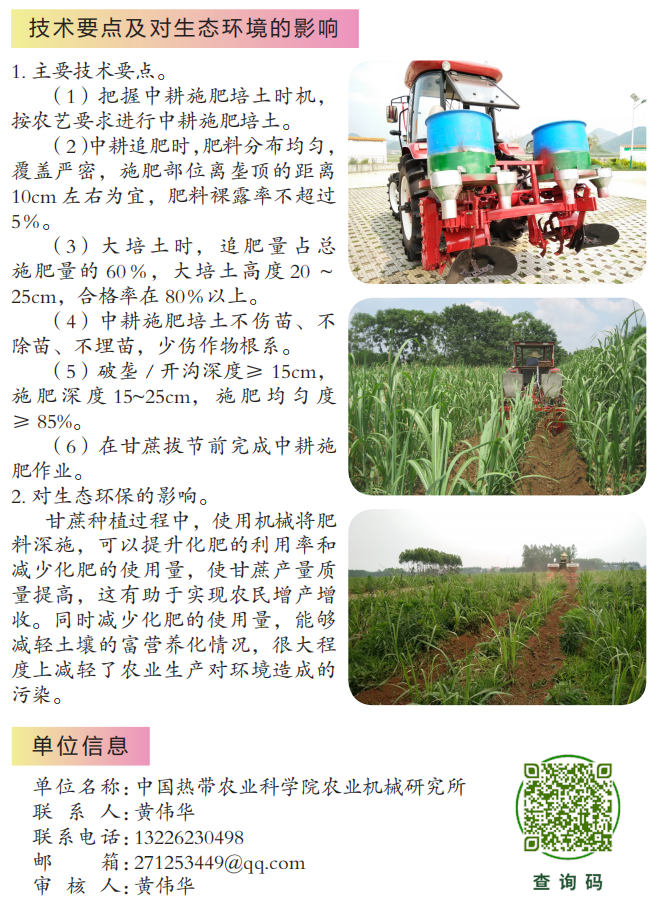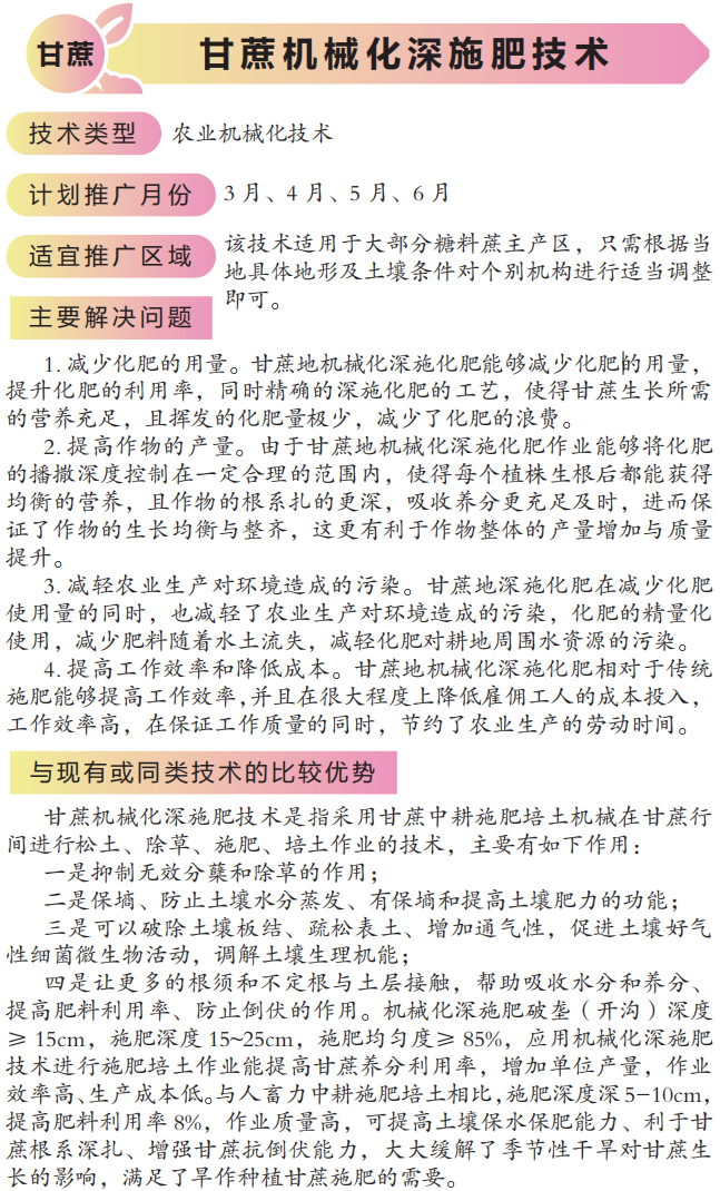 2022年农业主推技术:甘蔗机械化深施肥技术