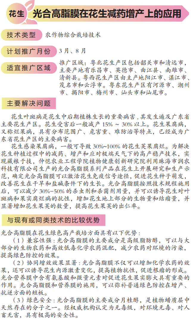 2022年农业主推技术:光合高脂膜在花生减药增产上的应用