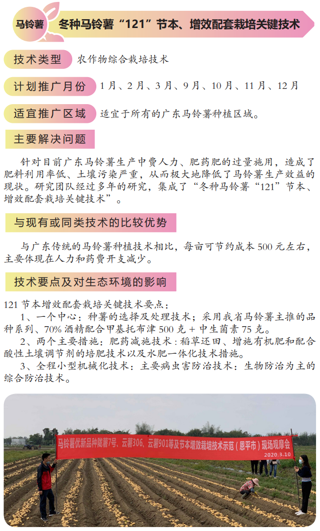 2022年农业主推技术:冬种马铃薯“121”节本、增效配套栽培关键技术