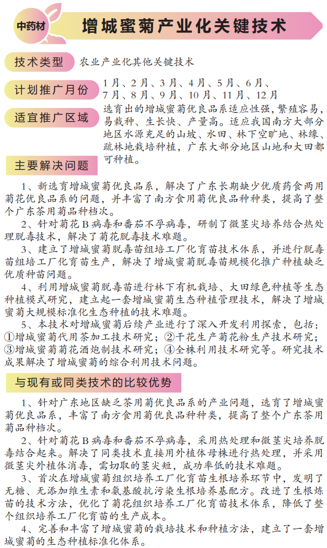 2022年农业主推技术:增城蜜菊产业化关键技术