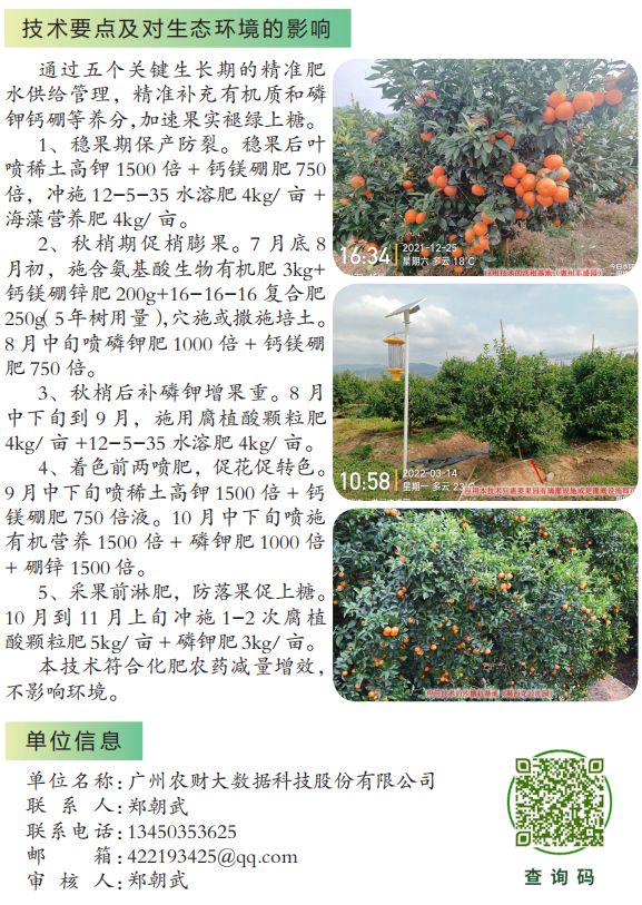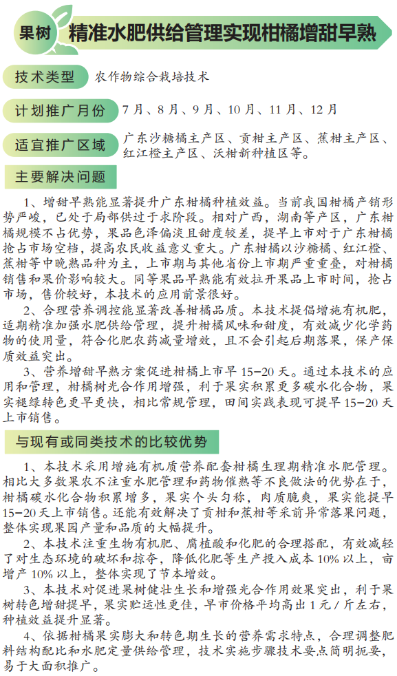 2022年农业主推技术:精准水肥供给管理实现柑橘增甜早熟