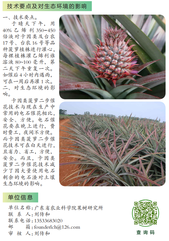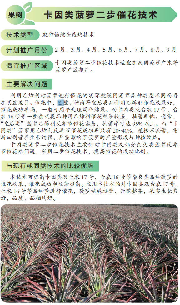 2022年农业主推技术:卡因类菠萝二步催花技术