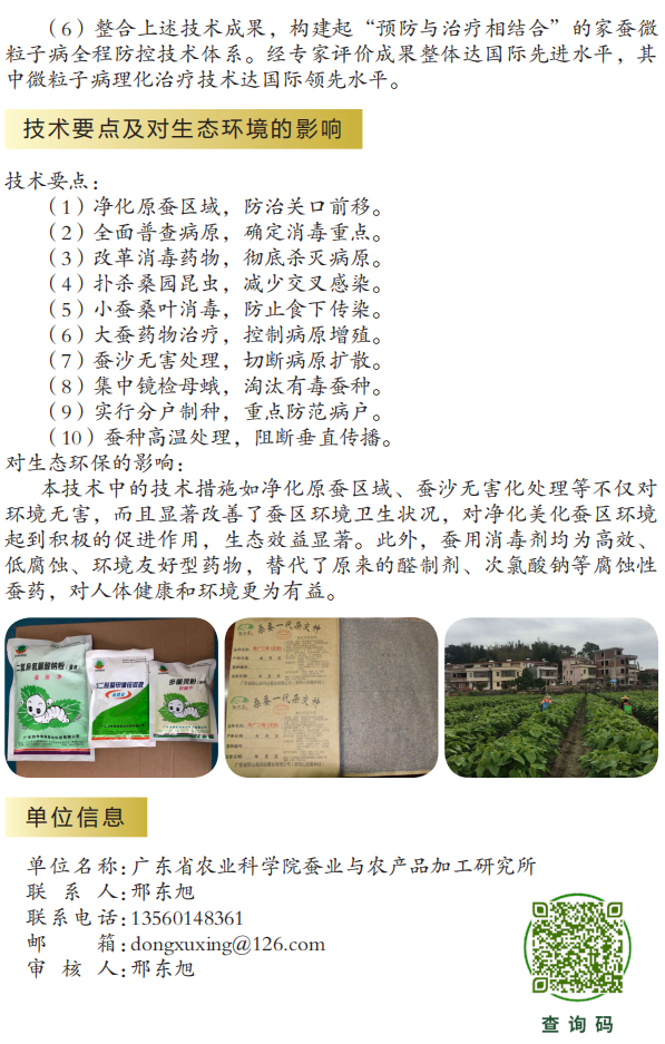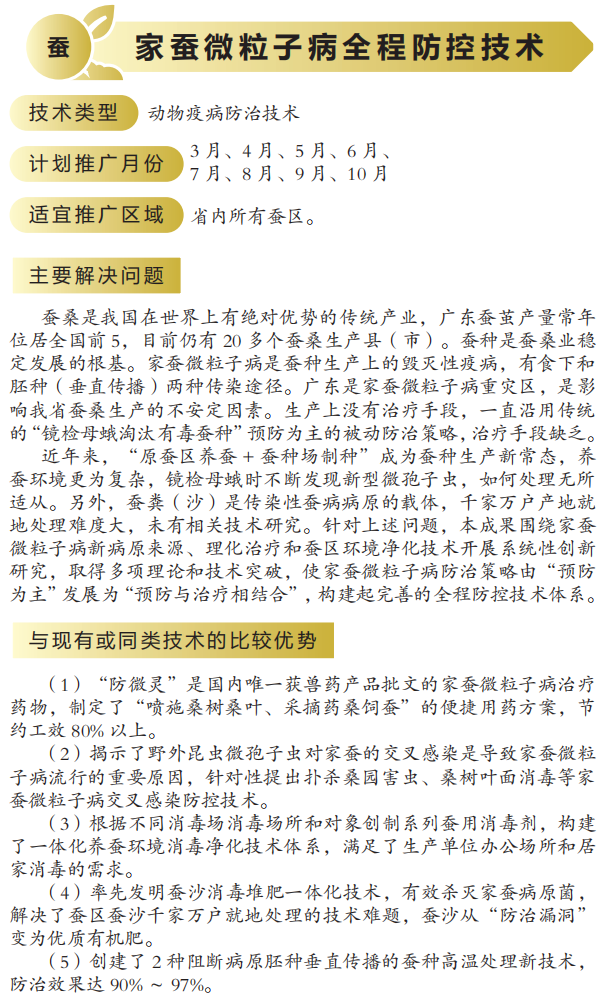 2022年农业主推技术:家蚕微粒子病全程防控技术