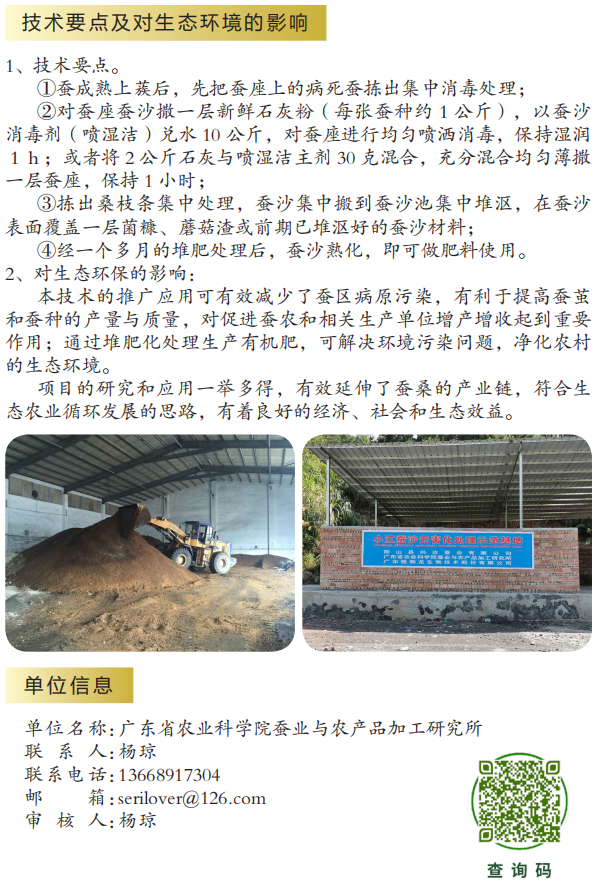 2022年农业主推技术:蚕沙消毒堆肥一体化技术