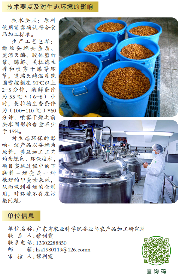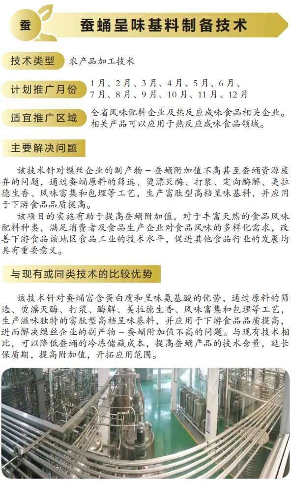 2022年农业主推技术:蚕蛹呈味基料制备技术