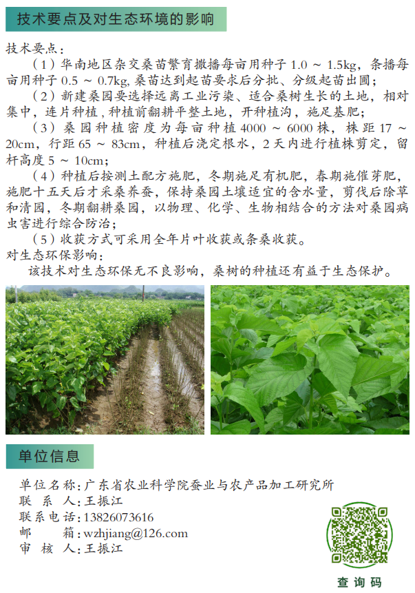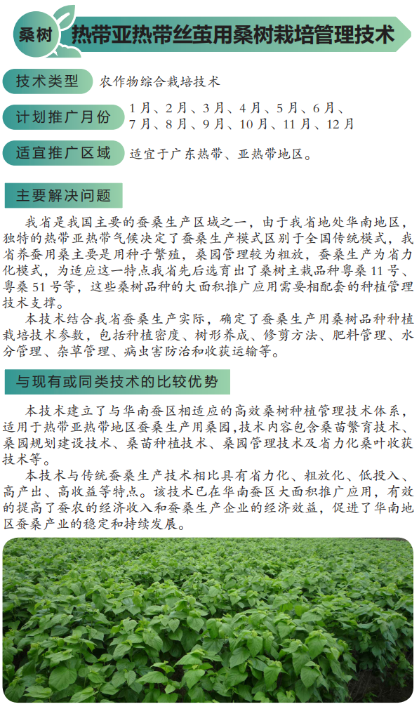 2022年农业主推技术:热带亚热带丝茧用桑树栽培管理技术