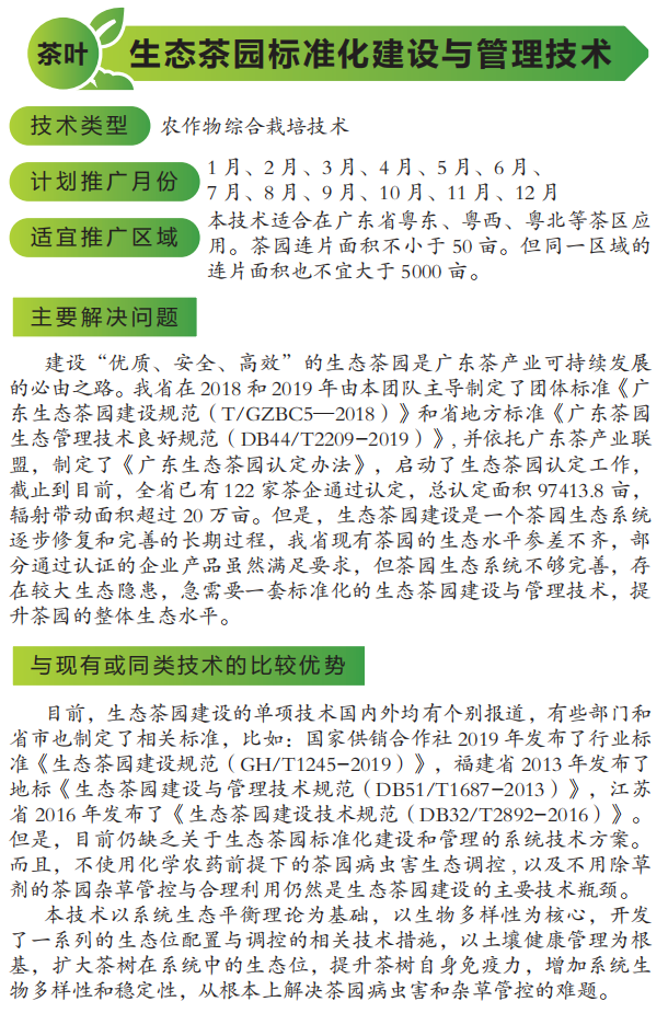 2022年农业主推技术:生态茶园标准化建设与管理技术