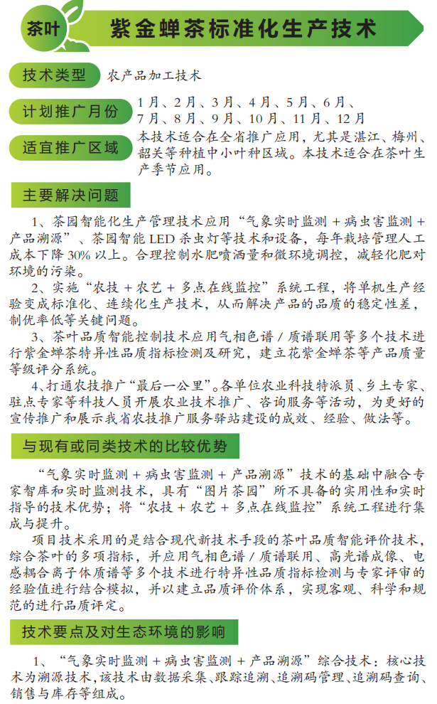 2022年农业主推技术:紫金蝉茶标准化生产技术