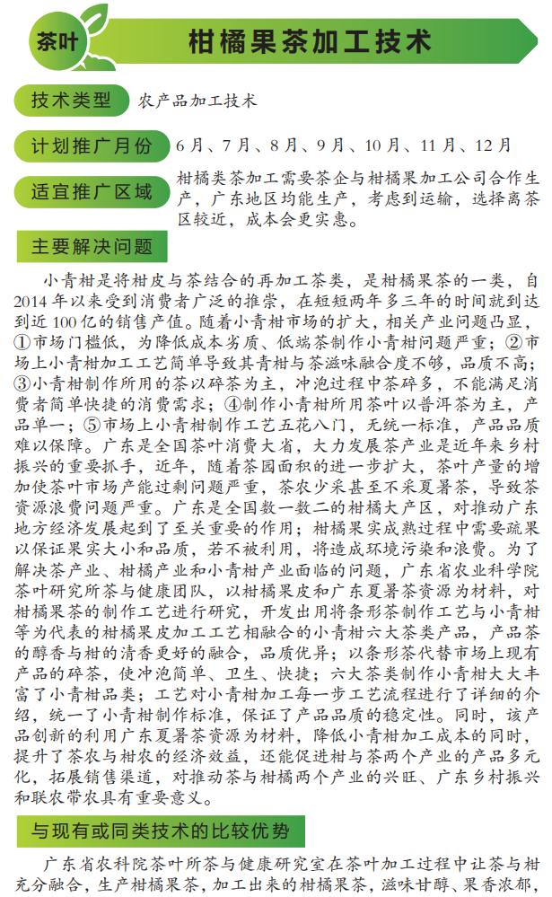 2022年农业主推技术:柑橘果茶加工技术 茶叶