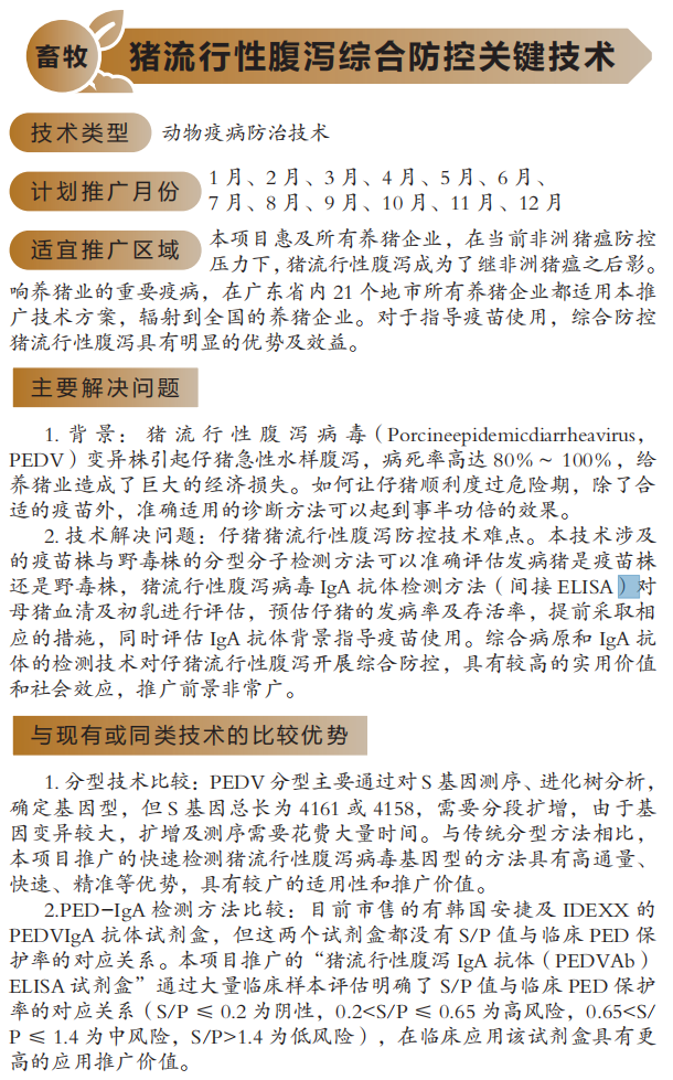 2022年农业主推技术:猪流行性腹泻综合防控关键技术