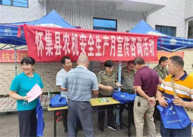 6月15日,肇庆市怀集县农机总站工作人员到桥头镇开展农机安全咨询日活动,现场派发(环保袋、腰包、扇子、)等各种农机宣传资料100多份,并开展收割机登记入户手续。