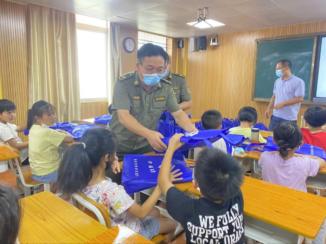 下午,做好各项防疫措施后,肇庆市县两级农机监理人员与镇政府工作人员前往蚬岗镇中心小学,向学生讲解农机安全生产知识,分发农机安全生产宣传资料。肇庆市农机监理所所长黎仕芬给学生们上了一节通俗易懂、深入浅出的农机安全教育课,叮嘱学生们要时刻牢记生命至上、安全第一,在暑假期间绝不能乘坐拖拉机,并充分发挥“小手拉大手”的作用,向家长和亲朋好友广泛宣传农机安全生产知识,请他们自觉遵守“七个严禁”,做到“五个不安全不出门”,努力营造人人讲安全,个个重安全的良好氛围。
