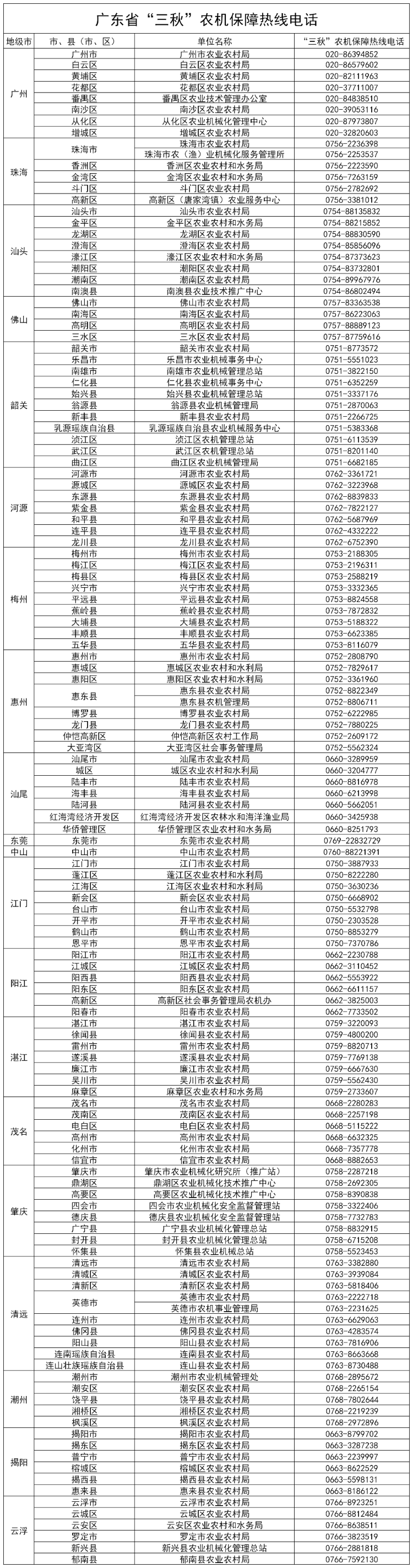 关注!广东“三秋”农机保障热线电话公布