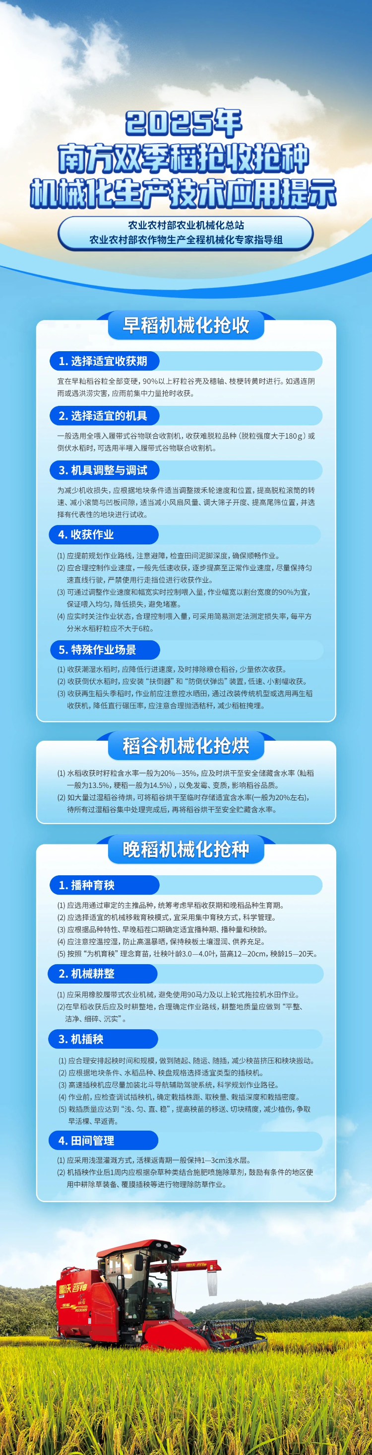2025年南方双季稻抢收抢种机械化生产技术应用提示