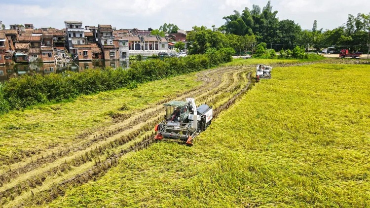 春种一粒籽,夏收万颗粮。广州市早稻播种面积18.9万亩,比增1.85万亩,增幅10.85%。目前,早稻已进入集中收获期,市农业农村局全面部署开展农机“双抢”行动,根据早稻成熟进程,适时抢晴收获,加快机收机种速度,做到成熟一块、收获一块,进一步降低稻谷产后损失,力争7月底前全面完成收割,确保早稻应收尽收、安全入仓,晚稻播在丰产期。