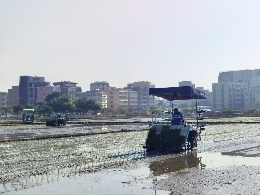 为贯彻落实2022年中央一号文件精神,牢牢把住粮食安全主动权,推动掀起春耕生产热潮,3月7日,2022年春季农业生产暨支农服务下乡现场会在素有“广东第一田”之称的台山市中国农业公园举行,吹响全市春耕生产“冲锋号”,在田间地头掀起一番春耕热潮,“高大上”的农机更是频频“抢镜”,一幅农机闹春耕的热闹图景“虎虎生威”。