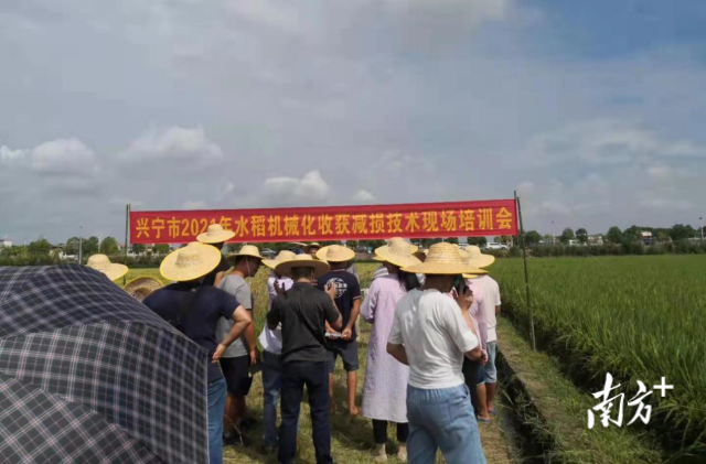 7月6日,兴宁市农业农村局在新圩镇崇上村举办“兴宁市2021年水稻机械化收获减损技术现场培训会”,来自全市的农业专业合作社代表、种粮大户代表、联合收割机操作员共42人参加了此次现场培训活动。