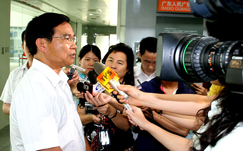 昨天,刚参加完广东“民声热线”节目的陈福林被记者团团围住,询问有关于猪肉价格的相关问题。