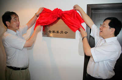农业部农业机械化管理司司长宗锦耀到会致贺,并和丁翔文站长共同为总站专家委员会揭牌。