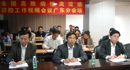 陈福林副厅长、省重大动物疫病防治指挥部组成单位及相关单位负责人在厅内组织收看了视频会议,会议后陈福林副厅长发表讲话要求各地贯彻农业部的指导精神,切实加强检疫及执法监督工作,在春节到来之即尤其是要确保动物和动物产品安全。各地市防治高致病禽流感指挥部门负责人通过广东农业信息网转播收看了视频会议。