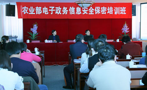 为推进农业部重要信息系统安全等级保护定级工作的顺利开展,培训班上,部信息中心副主任郭永田、公安部十一局重要信息系统安全监察处处长郭启全、国家保密研究所所长杜虹等同志分别作了“加强信息保障工作,促进农业信息安全”、“国家信息安全等级保护制度的贯彻与实施”、“国家保密政策法规”等专题讲座。同时,还邀请了有关信息安全专家就网站信息安全保密管理、信息系统安全技术管理、计算机日常安全设置与管理维护等相关知识对学员进行了培训。