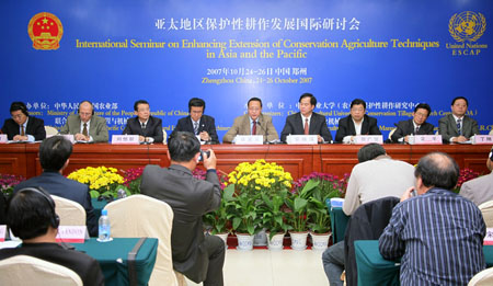 10月24日至26日,由农业部和联合国亚太农业工程与机械中心共同主办的“亚太地区保护性耕作发展国际研讨会”在河南郑州举行。国内外致力于发展保护性耕作的专家学者和技术推广、项目管理人员围绕“保护性耕作与环境保护、农业可持续发展”、“保护性耕作技术与机具”、“保护性耕作推广与应用”、“保护性耕作发展战略与政策”等议题展开深入讨论。