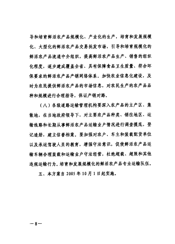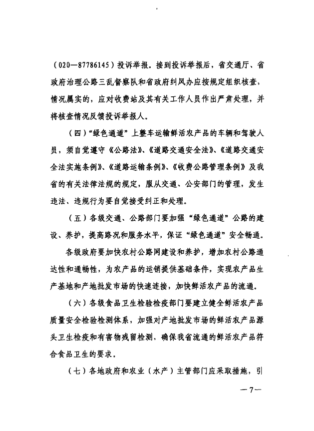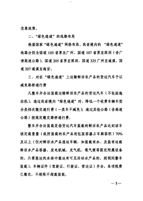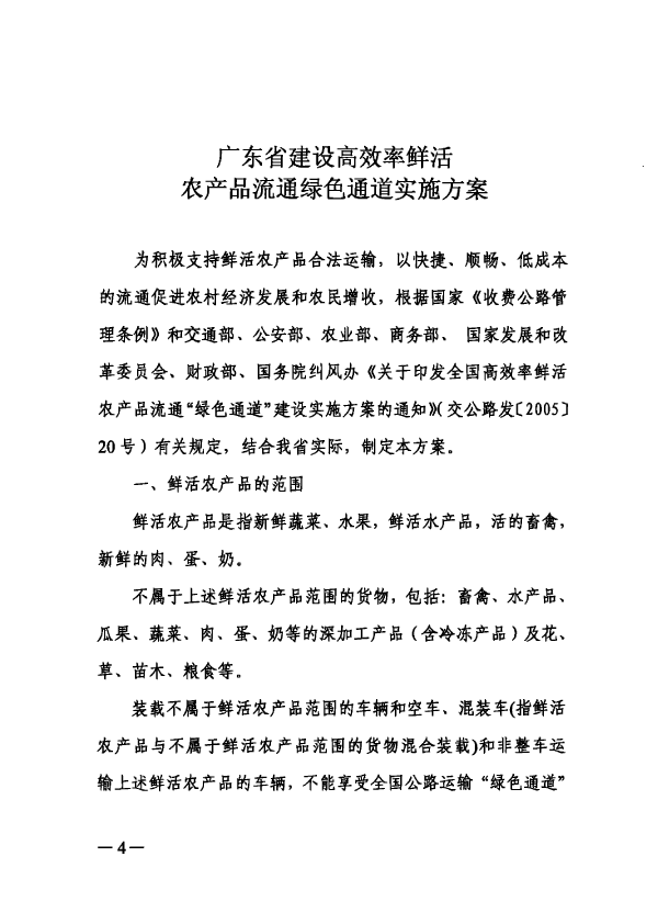 广东省建设高效率鲜活农产品流通绿色通道实施方案