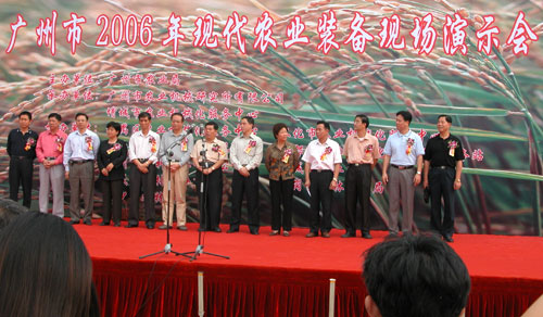 为进一步加快实现农业机械化步伐,提高现代装备水平,建设都市型现代化农业,推动社会主义新农村建设,11月15日,广州市农业局(海洋与渔业局)在增城市朱村街先科农业有限公司万亩水稻示范基地主办了广州市2006年现代农业装备现场演示会。现场集中演示了近年来广州市引进的先进、适用的现代农业装备和农业机械,以图片形式展示广州市现代农业装备的发展成果,同时开展现代农业设施装备专家咨询服务活动。
