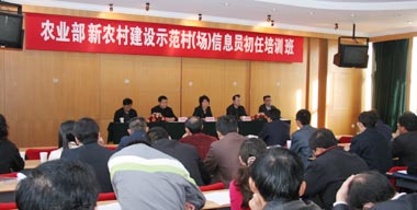 10月23日,农业部社会主义新农村建设示范村(场)信息员初任培训班在京开班。培训班将对全国35个农业部新农村建设示范村(场)信息员进行为期一周的培训,使示范村(场)信息员达到能熟练采集、传播信息;能根据村民的需要,查找下载及审核发布信息;能组织村民收看农业电视节目;能指导村民上网获取信息;能利用信息服务站的设备支持示范村(场)管理等“五能”要求。