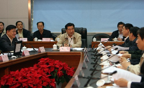 4月21日,中共中央政治局委员、国务院副总理、国家防汛抗旱总指挥部总指挥回良玉主持召开国家防总全体会议,研究分析今年汛情旱情形势,进一步安排部署防汛抗旱救灾工作。 新华社记者 姚大伟 摄
