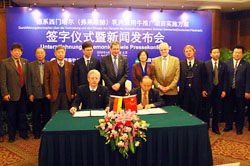 4月1日,全国畜牧总站与德国宝牛育种中心联合在京举行德系西门塔尔乳肉兼用牛推广项目实施方案签字仪式,标志着中国农业部国际合作司与德国巴伐利亚州农林部签署的《关于推广应用德系西门塔尔(弗莱维赫)乳肉兼用牛种遗传物质与相关技术的合作协议》正式启动实施。
