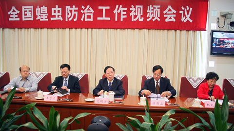 图为蝗虫防治工作视频会议广东分会场