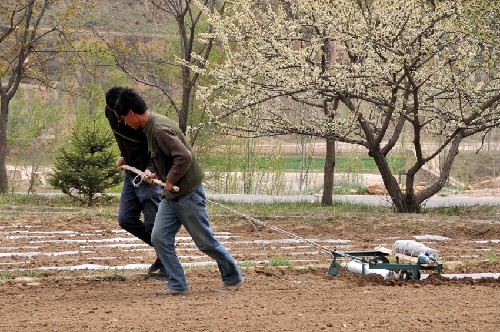 4月17日,黑龙江省双城市东利村农民在应用玉米保护地通透密植栽培技术播种玉米。 黑龙江省是我国最大的商品粮生产基地,2008年以来,全省各地克服严重干旱、农资价格上涨等不利因素,努力提高春耕生产的标准和质量。目前,该省的春耕生产已经全面展开,玉米、小麦等主要作物播种面积已完成275万亩,播种进度快于上年同期。 新华社记者 孙英威 摄
