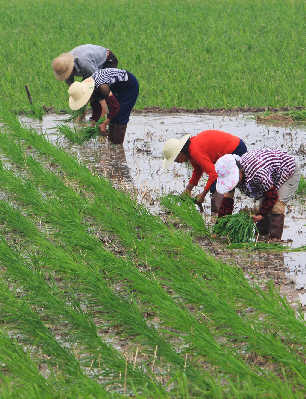 一个农民每出一天工,可获得世界粮食计划署3.25公斤的粮食补贴,这基本可满足六口人一天的粮食需要。如不考虑具体的土地和作物情况的差异,被淹后一亩地的复耕约需数十工。恢复生产所必需的要素如种子、化肥、农药等都由中国政府提供。