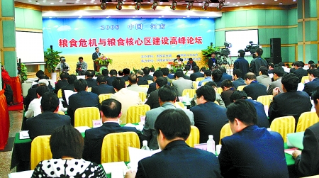 9月25日下午,作为2008年全国农产品加工业博览暨东西合作投资贸易洽谈会重头戏的“粮食危机与粮食核心区建设高峰论坛”在河南省驻马店市天龙大酒店隆重举行。河南省委书记、省人大常委会主任徐光春作了题为《把中原粮仓打造成丰厚殷实的美好家园》的主题演讲,指出要以科技为支撑,打造天下粮仓;以产业化为载体,做大国人厨房;以知识为力量,培育产业大军;以创新为动力,激活生产潜能;以市场为导向,构筑发展平台;以政策为保障,搭建致富金桥,把粮食核心区建设成为粮丰民富、经济繁荣、生态文明、和谐安康的美好家园。