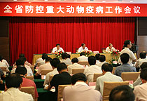 李容根副省长在讲话中深入分析了全省防控重大动物疫病和防范甲型流感工作的形势,深刻阐述了做好当前防控工作的重要意义,明确提出要进一步加强防控重大动物疫病和防范甲型流感的工作措施。他指出,国外发生甲型H1N1流感疫情后,广东迅速对生猪开展了监测排查,全省未从猪体中检测到甲型H1N1流感病毒。但是,当前广东省重大动物疫病防控任务仍然十分繁重,全省各地各部门要进一步增强危机感、紧迫感和责任感,把防控重大动物疫病作为当前的一项重要工作抓紧抓好,全力以赴严防重大动物疫情发生。一要突出抓好生猪综合防疫管理。超前做好应对生猪发生流感病毒变异的准备,加强生猪饲养管理和疫病防控。二要突出抓好畜禽强制免疫。坚持“长年免疫、全年防控”的工作方针,确保禽流感、口蹄疫、高致病性猪蓝耳病、猪瘟等强制免疫率达到100%。三要突出抓好疫情应急管理。各级要成立应急预备队,健全突发动物疫情预警预报和应急机制,提高应急管理能力。四要突出抓好稳定发展生猪生产。在做好疫情防控的同时,千方百计稳定生猪生产,把贯彻落实珠江三角洲改革发展规划纲要和实施广东省生猪生产发展规划、建设重点生猪养殖场紧密结合起来,推进畜牧业现代化建设,促进畜牧业健康发展。