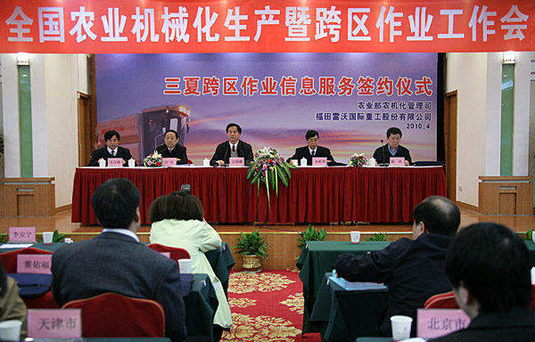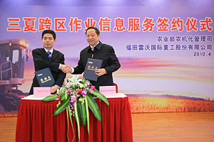 再过40天,小麦主产区麦收工作即将开始。为做好跨区机收的信息服务,农业部农业机械化管理司与福田雷沃签署了2010年“三夏”跨区机收信息服务协议。 |