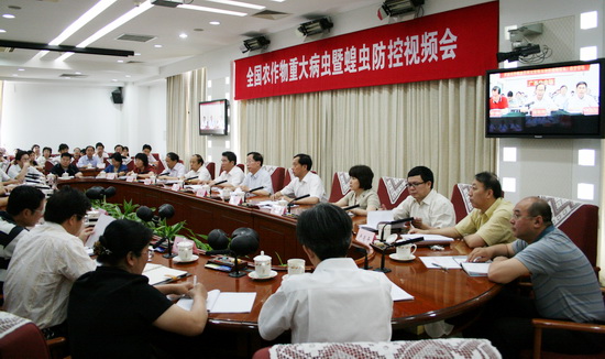 会议由农业部总经济师、全国农作物重大病虫暨治蝗指挥部副指挥长陈萌山主持。在31个省、自治区、直辖市设立了分会场,各省(区、市)农业(农牧、畜牧)厅(委、局),新疆生产建设兵团农业局、黑龙江农垦总局负责人,有关省(区、市)农作物重大病虫暨蝗灾防治指挥部成员,重点市、县蝗虫防治领导机构成员等,共1600余人参加会议。