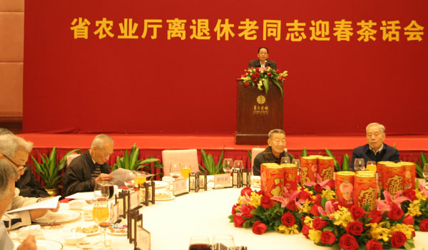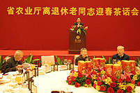 玉兔辞岁,金龙迎春。1月19日上午,省农业厅举行离退休老同志迎春茶话会,向老领导老同志表示诚挚的节日问候。谢悦新、蔡汉雄、程萍、郑惠典、王力伟、蔡树淦、余俭娥、刘金生、潘雪芬、陈华富、陈正辉、冼少文等厅领导,以及杜瑞芝、许士鉴、方学等250多名老领导老同志及各处室、事业单位的负责人共300多人出席了茶话会。