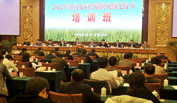2月16日至17日,农业部在广东省江门市举办2012年全国水稻育插秧机械化技术培训班。农业部农机化管理司司长宗锦耀出席培训班,对做好今年农机春耕备耕和推进水稻生产全程机械化工作进行了部署。