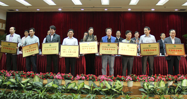 会议期间,还举行了全国农作物病虫专业化统防统治百强服务组织授牌仪式,宣布了100个全国农作物病虫害绿色防控示范区名单。