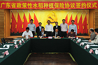 4月26日下午,广东省农业厅与人保财险广东分公司等三家保险机构签订水稻保险经办协议。广东省农业厅厅长郑伟仪,广东保监局领导和人保财险广东分公司、阳光农业相互保险广东分公司、中华财险广东分公司等主要领导及有关部门负责人出席了签约仪式。