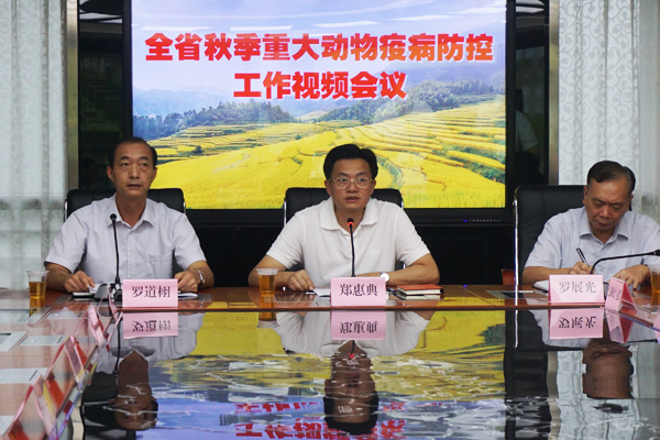 9月1日下午,在农业部召开的全国秋季重大动物疫病防控工作视频会议结束后,广东省农业厅紧接着召开了全省秋季重大动物疫病防控工作视频会议,贯彻落实全国秋防视频会议精神,全面部署广东省秋防工作。省农业厅党组成员、副厅长、省畜牧兽医局局长郑惠典同志出席会议并作讲话,省农业厅副巡视员罗展光同志、省畜牧兽医局副局长罗道栩同志出席会议,会议由罗道栩同志主持。