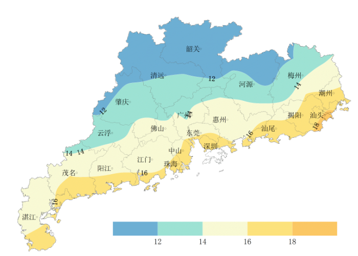 27~29日,广东省大部分地区阴天间多云天气为主,西北偏北地区有分散小雨,各地气温逐渐回升。11月30日~12月1日,受中等强度冷空气和切变线影响,全省中北部地区有小到中雨局部大雨,日平均气温下降4~7℃,南部地区有分散小雨,日平均气温下降3~5℃。2日,西北部和南部沿海零星小雨转阴天,其余地区多云天气为主。3日,受冷高压脊控制,多云到晴天为主。