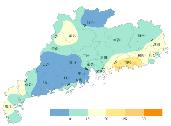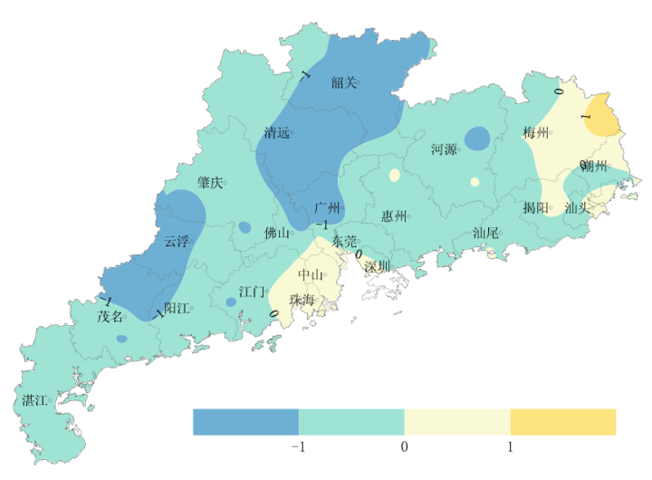 19~20日,全省晴天,最低气温:西北部地区、肇庆、云浮、惠州北部地区1℃~5℃(西北高海拔山区-3℃~0℃),部分地区有冰冻,其余大部分地区7℃~10℃。21日,全省晴天为主,最低气温:西北部、肇庆北部地区4℃~6℃(西北高海拔山区0℃~2℃),沿海地区10℃~12℃,其余地区8℃~10℃。22日,受地面冷高压脊控制,北部地区晴间多云,中南部地区晴到多云,西北和中部偏北地区仍有5℃以下的低温,部分地区有霜(冰)冻。23~24日,受低层偏东气流和弱冷空气补充影响,西部地区分散小雨转多云到晴,东部地区多云到阴天转晴到多云,局部有零星小雨。
