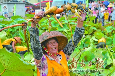 “从早晨一直到晚上,进村的路上都是小车,游客从珠三角赶过来赏莲花、吃莲藕,村民们卖农产品,一天挣好几百块。”时至今日,阳江阳东区东平镇口洋村村支书杨国庆回想起去年8月12日阳东区东平镇莲藕文化节的热闹场景,依然笑得合不拢嘴。